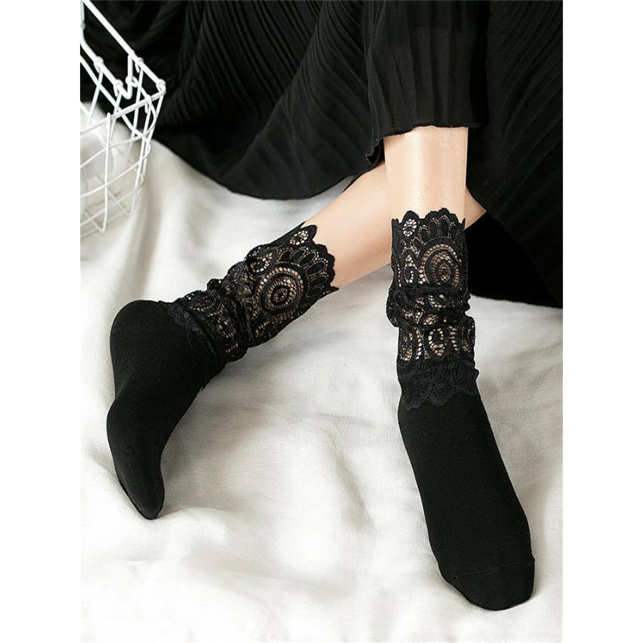 Sexy Lace Floral Mesh Socks Women Black Transparent Short Cotton Sock For Ladies Elastic Retro Cute Socks Female New