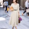 ZANZEA Abito casual da donna a maniche 3/4 e girocollo a tinta unita