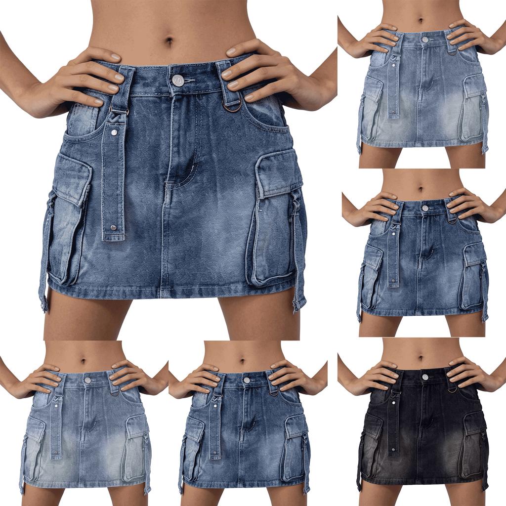 Womens Skirt High Waisted Stretchy Jean Skirts Casual Slim Fit Short Skirts
