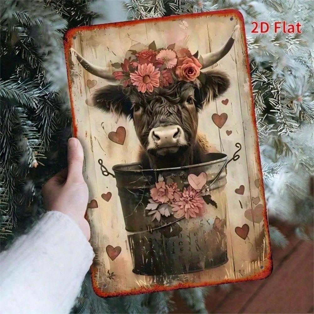 RoaringCreek Vintage Metal Wall Art Sign Farmhouse Decor with Floral Cow Barrel Rustic Pink Flowers 78x118 Inch