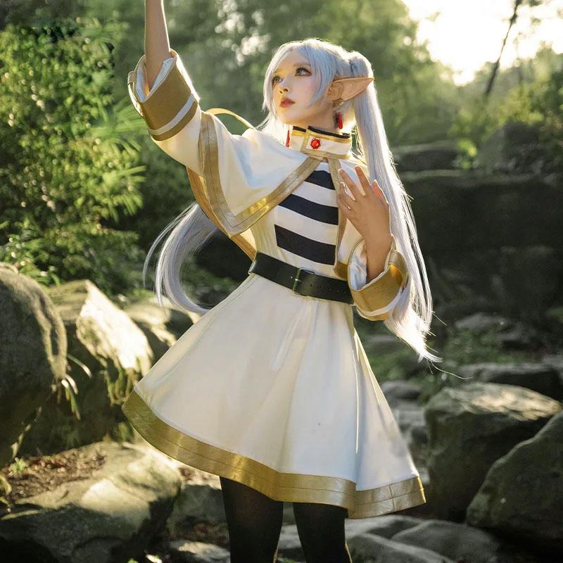 Anime Frieren al funerale Frieren costume cosplay vestito operato cappotto gonna cintura orecchini abiti per le donne Halloween Materiale:Poliestere