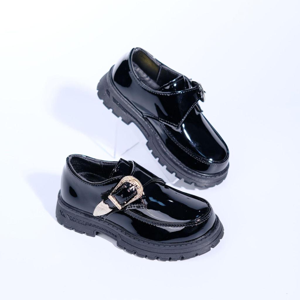 These stylish children's school shoes bring together elegance and durability, featuring a glossy patent leather finish and a distinctive gold buckle that adds a touch of distinction. Designed with practicality in mind, they come equipped with a sturdy TPR sole that ensures comfort and stability for active school days. The 2026 edition combines timeless style and modern functionality, making them the perfect choice for any school wardrobe.