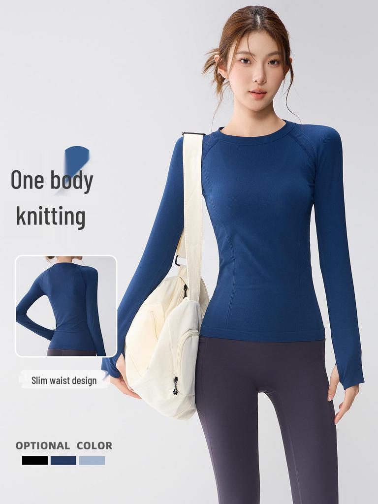 Women's Slimming Long-Sleeve Pilates & Running T-Shirt with Finger Cots - High-End, Tight-Fitting Fitness Top