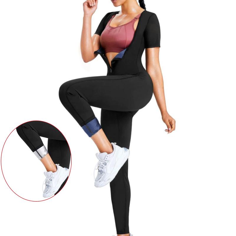 Women's Sauna-Style Cross-Back Bodysuit with Tummy Control for Yoga and Fitness