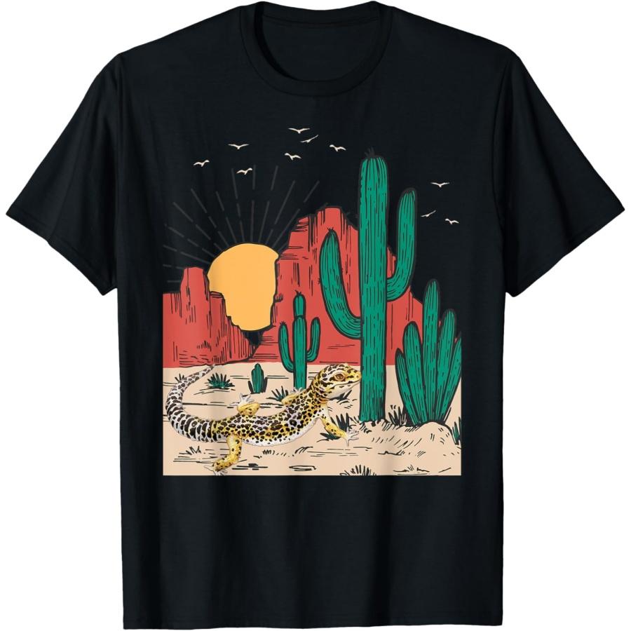 Vintage Sunset Mountain Cactus Desert Vibes Leopard gecko T-Shirt