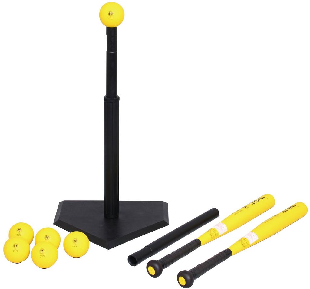 Contents: 1 spare center pole, 2 medium tee bats, 6 11-inch balls, 1 rule book