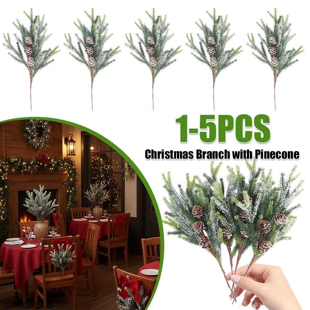 13in Christmas Fake Frosted Pine Pick with Pinecones Stems Artificial Flocking Pine Pick for Wreaths Garden Party Holiday Decor