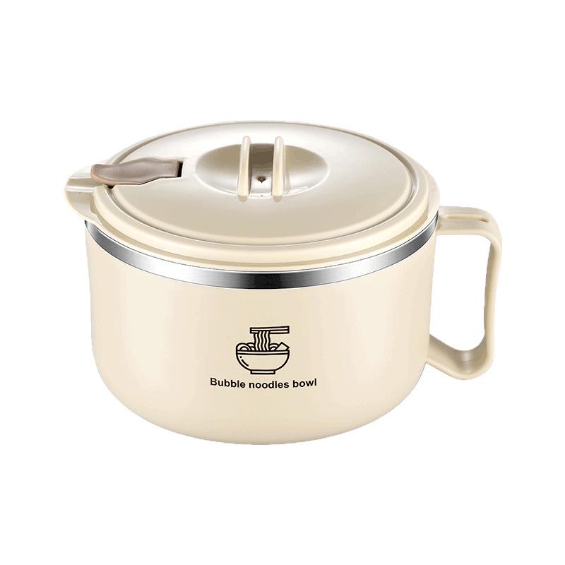 304 Stainless Steel Noodle Bowl with Lid: Large Capacity, Water-Draining for Dorm, Office, or Canteen