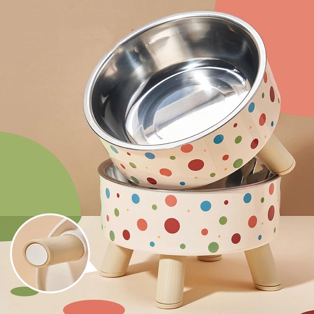 2-layer New 5.5inch Pet Food Bowl Neck Protector Stainless Steel Cat Feeding Bowl Heightened Anti-slip High-foot Bowl Cat Dog