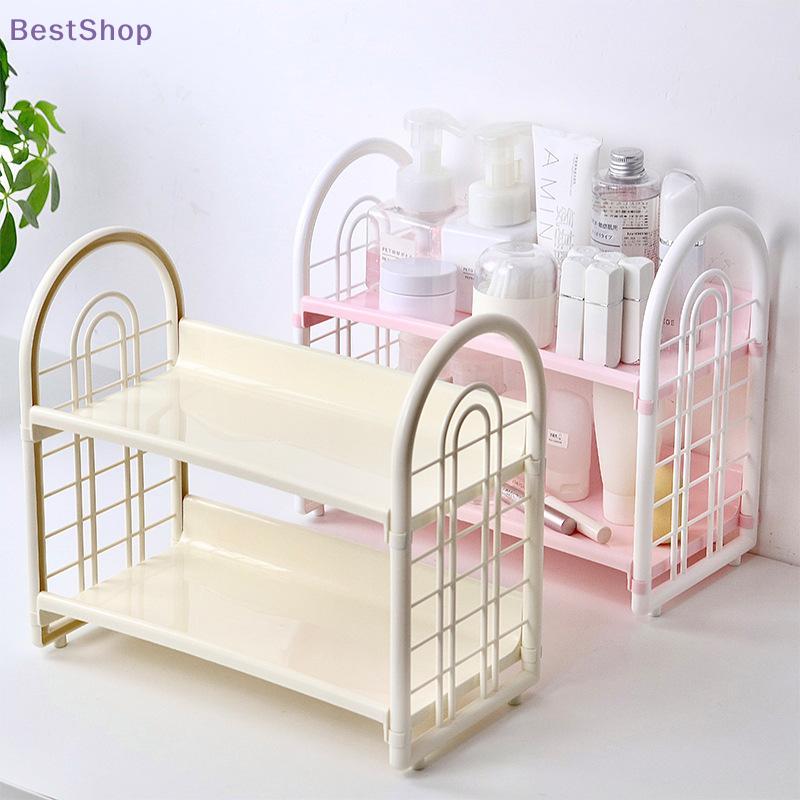 2-Tier Hollow Out Desktop Storage Rack | Retro Style Plastic Organizer Shelf For Kitchen/Bathroom/Office
