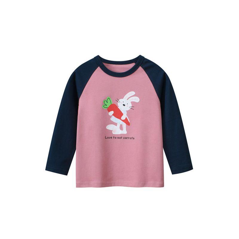 Korean Style Children's Clothing Spring and Autumn Girls' Patchwork Sleeve Raglan Sleeve Rabbit Long-Sleeve T-Shirt Children's Pure Cotton Base Shirt