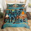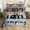 Happy Camping Bedding Set Camper Car Duvet Cover King Queen Microfiber Smoky Mountain Wood Print Quilt Cover Set For Girls Boys