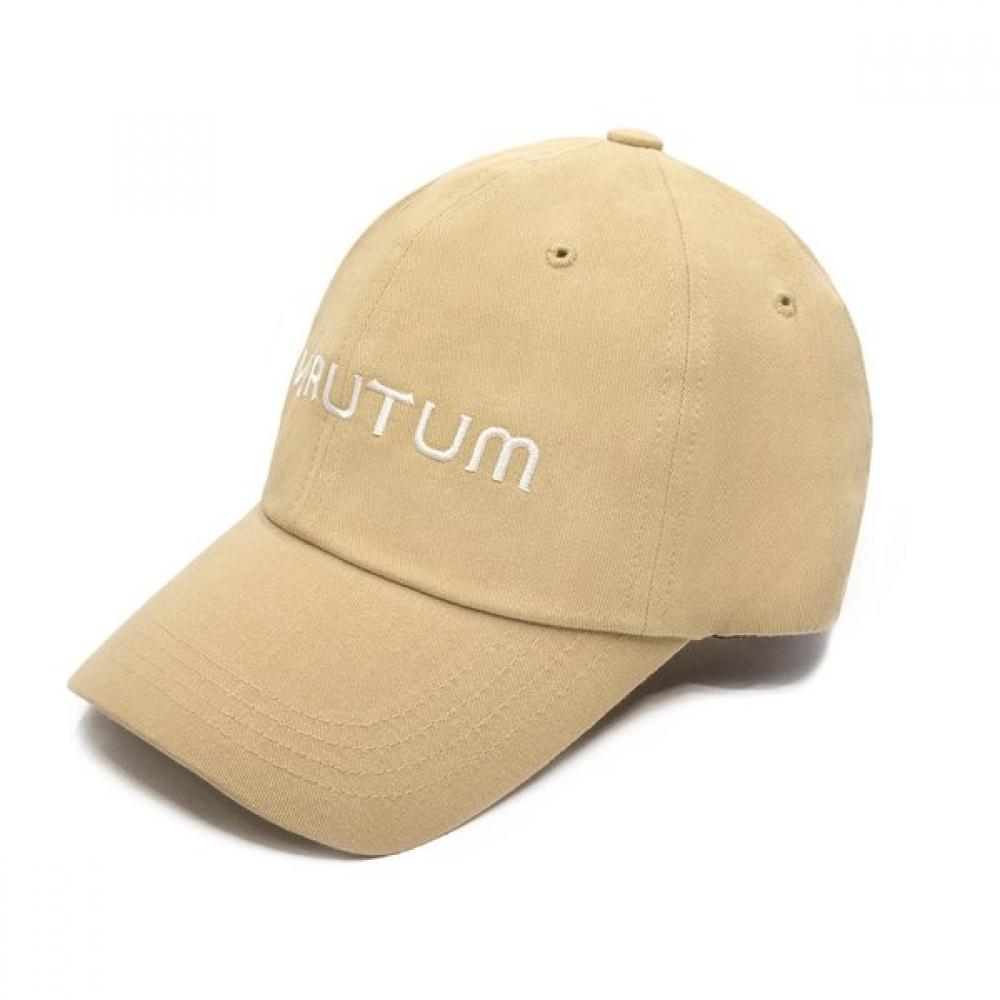 The HW-BC147B Front Logo Bio Washed Deep Cap Beige features the VERUTUM logo prominently embroidered on the front in a wide format. The brand's signature trident emblem is embroidered just above the strap hole at the back, highlighting the brand's identity. Available in ONE SIZE with an adjustable strap for easy wear, this beige cap pairs well with various styles.