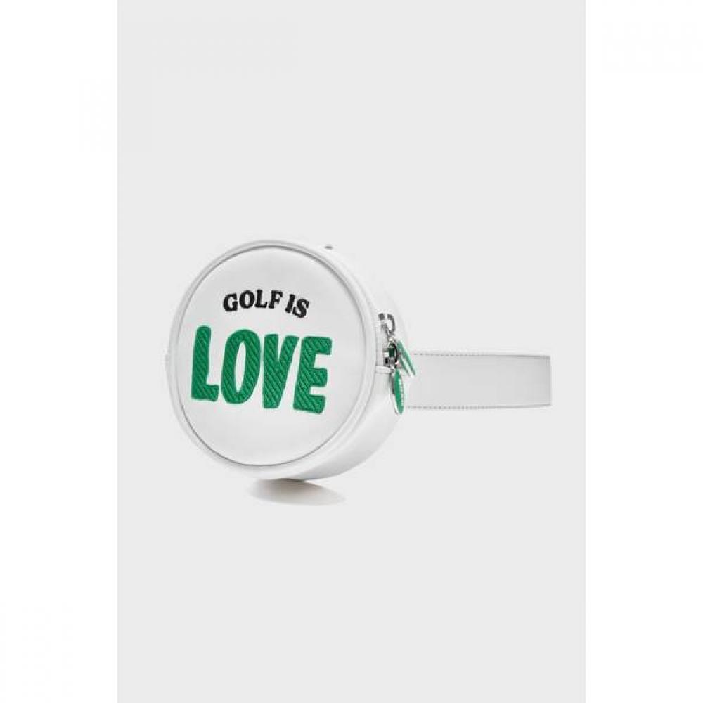 The GOXO Golf is Love Belt Bag in White is a compact-sized body bag designed for golf, allowing easy attachment to Boston bags or other bags for convenient mobility. The GOXO embossed logo is distinctly displayed, enhancing its luxurious feel while conveniently carrying necessary items during golf rounds.