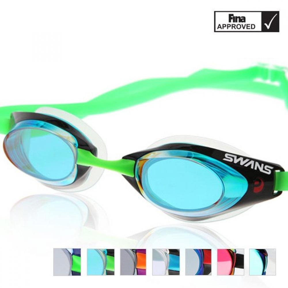 The Swans Mirror Swimming Goggles FINA Approved Falcon SR-71M is a high-performance racing goggle approved by FINA (International Swimming Federation). This model features mirrored lenses that reflect strong light and reduce glare. It includes UV protection and anti-fog coating, providing clear visibility during swimming competitions or training. The soft packing material fits snugly around the eyes, minimizing water ingress. The adjustable dual-band structure offers stable fixation. Various mirror lens colors are available, and it is made with high-quality silicone and polycarbonate lenses for durability and flexibility.