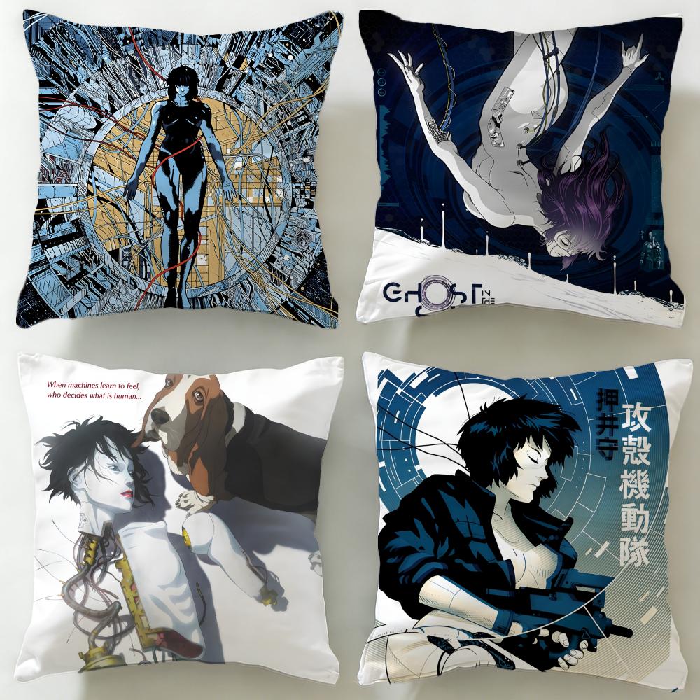 classic anime Ghost in the Shell Cushion Cover Soft & Easy-Wash Pillow Case – Versatile for Couch, Bed, Travel and Office
