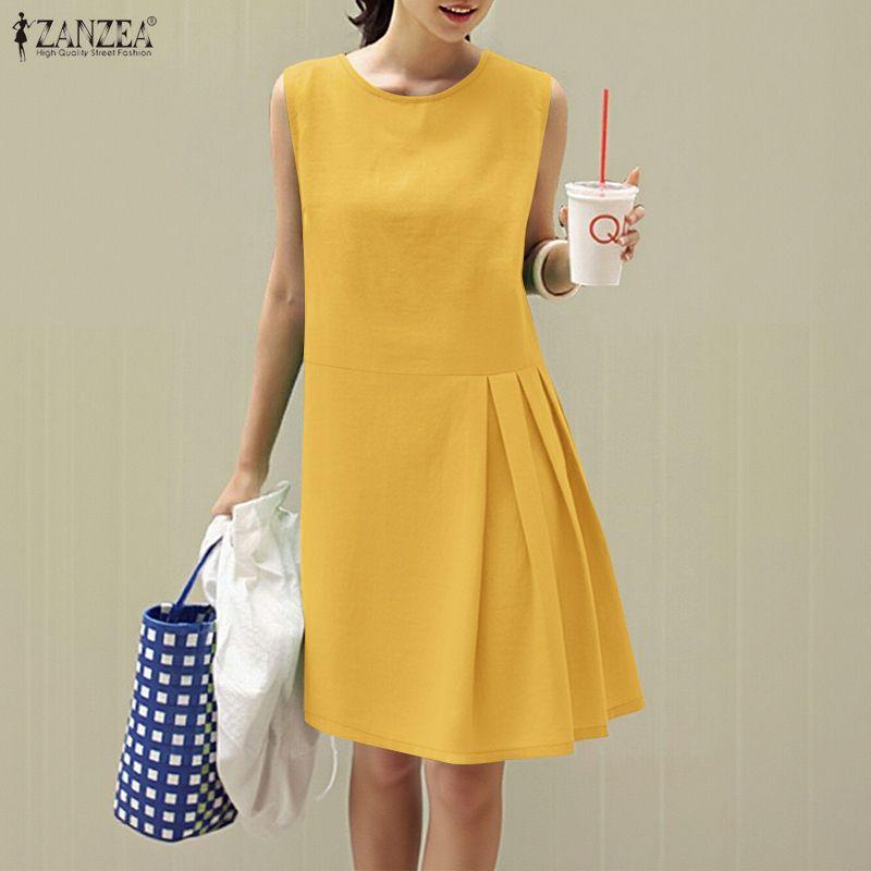 ZANZEA Abito estivo casual senza maniche con scollo rotondo da donna