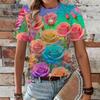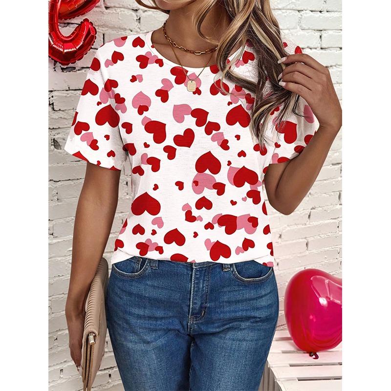 Heart Love Graphics T-Shirts Floral 3D Print Women's Casual Short Sleeves O-Neck T Shirt Y2k Harajuku Tees Tops