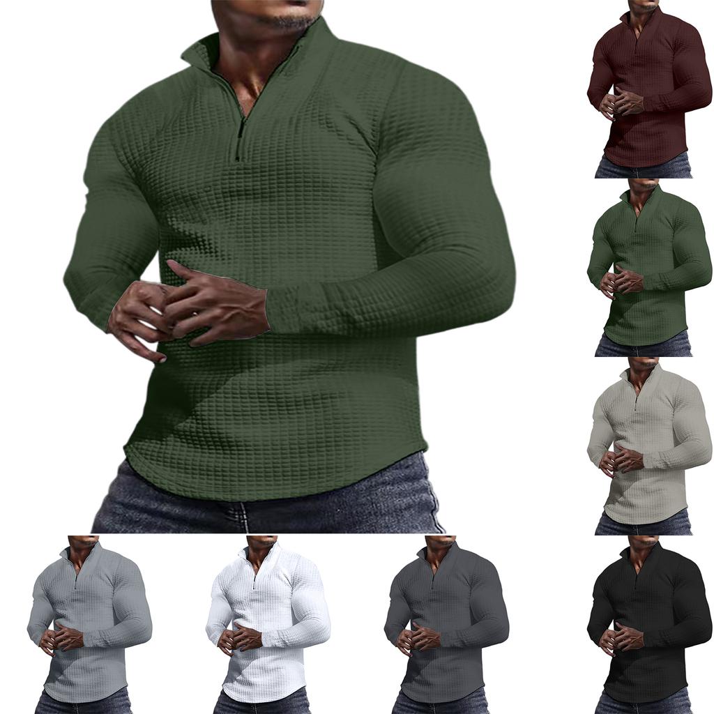 Men's Outdoor Casual Small Checkered Stand-up Collar Half-zip Long-sleeved Sweatshirt