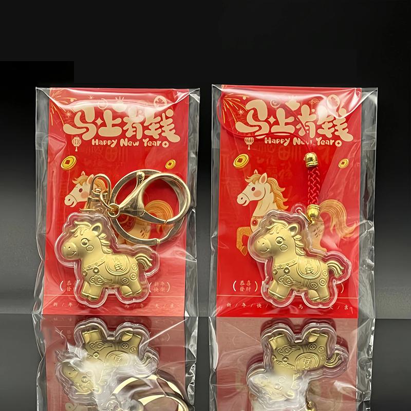 2026 Zodiac Horse Keychain, Imitation Gold Foil Lucky Wealth Phone Chain Lanyard, New Year Souvenir Gift