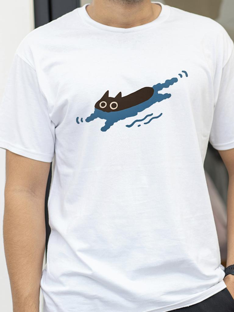 Men Woman Tees Swimming Black Cat Diving Shoulder Short Sleeved Tshirt for Women Breathable Casual Creative Summer Clothing Top