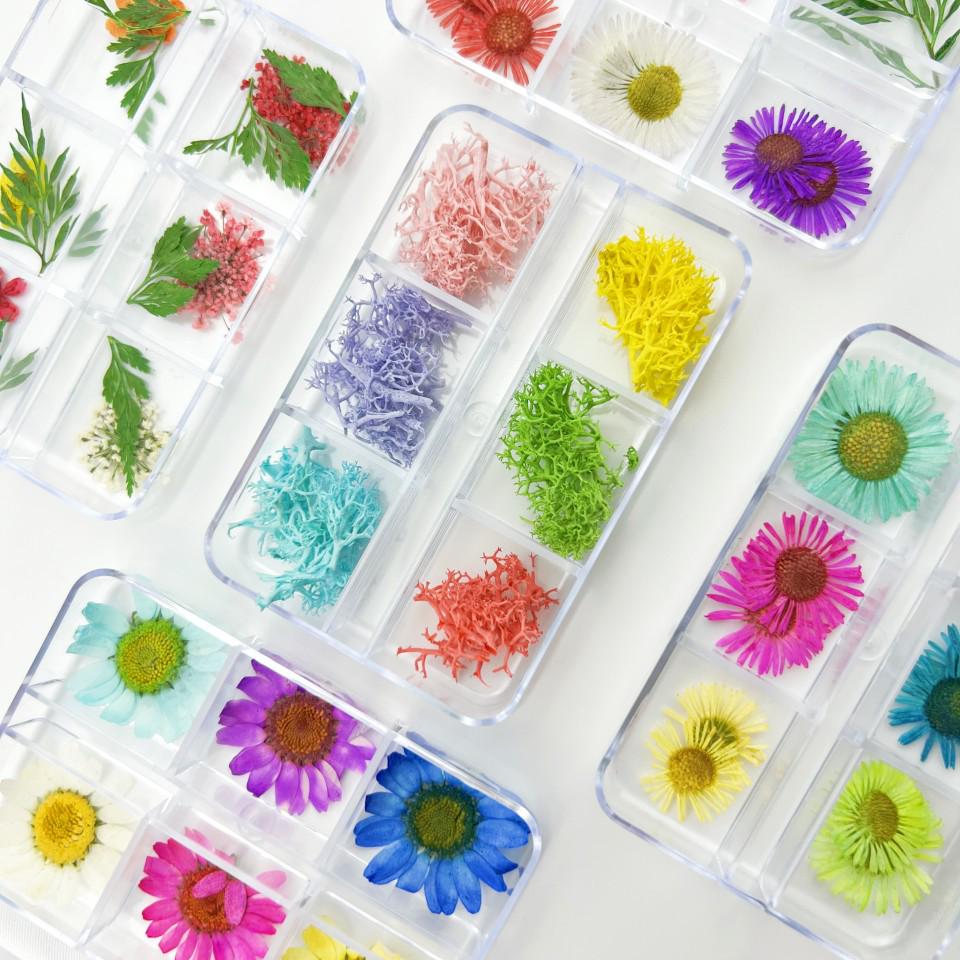 6-Grid Natural Dried Flowers for Nail Art - Japanese Style Sunflower & Baby's Breath DIY Decorations