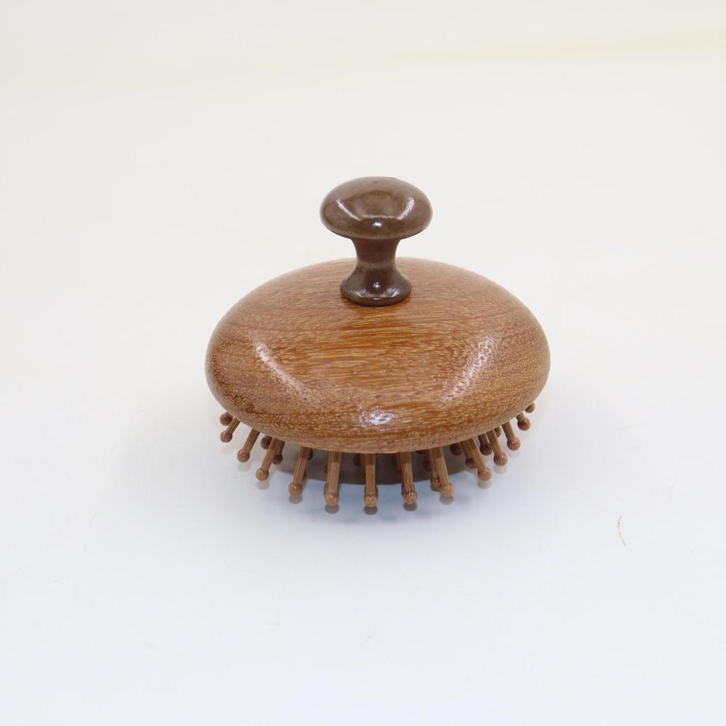 Golden Silk Sandalwood Round Massage Comb for Scalp Therapy and Hair Straightening