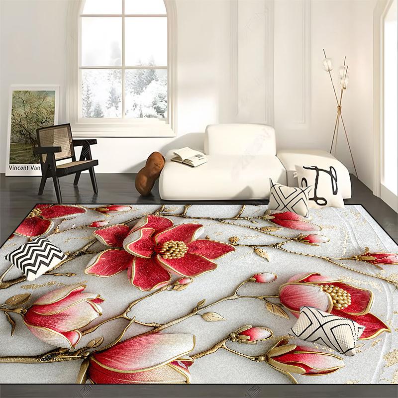 Tappeti Floreali Rosa Europei Soggiorno Decorazione Splendida Area Divano Tavolo per Tappeti Casa Camera da Letto Tappetino Antiscivolo Lavabile