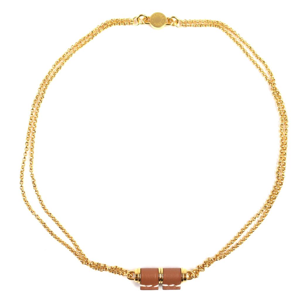 Pristine HERMES Necklace Charnier PM Serie gold Vaux Swift Leather Women Used