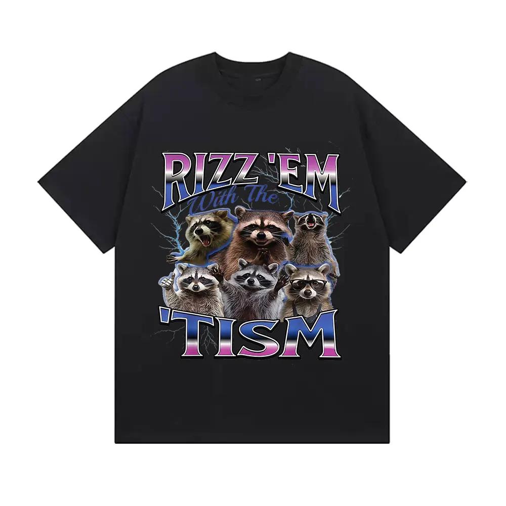 Rizz Em with The Tism Raccoon Funny Meme T Shirt Mens Women Summer Fashion Clothing Tshirts Casual Cotton Short Sleeve Tshirt