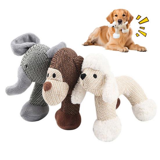 Plush Dog Toy Cute Animal Shapes Squeaky Chew Toy Linen Fabric Stuffed Animals Puppy Teething Toy for Dogs Boredom And Anxiety Relief