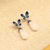 Elegant and elegant blue dripping butterfly stud earrings with simple temperament white magnolia flower imitation jade earrings silver needle women's