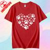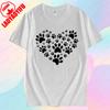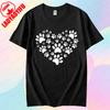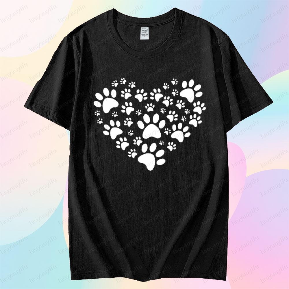 Cute Pet Footprint Print Tshirt Footprint Heart Shape Creative Design Tshirt Women Men Crewneck Cotton Short Sleeve Unisex Tee