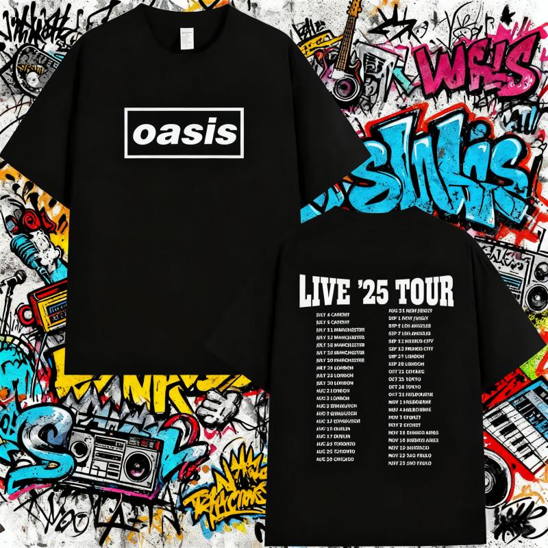 2025 Estate O-Oasis Live Tour Magliette Uomo Donna Casual Alta Qualità 100% Cotone Puro Stampata Traspirante Maglietta British Y2k
