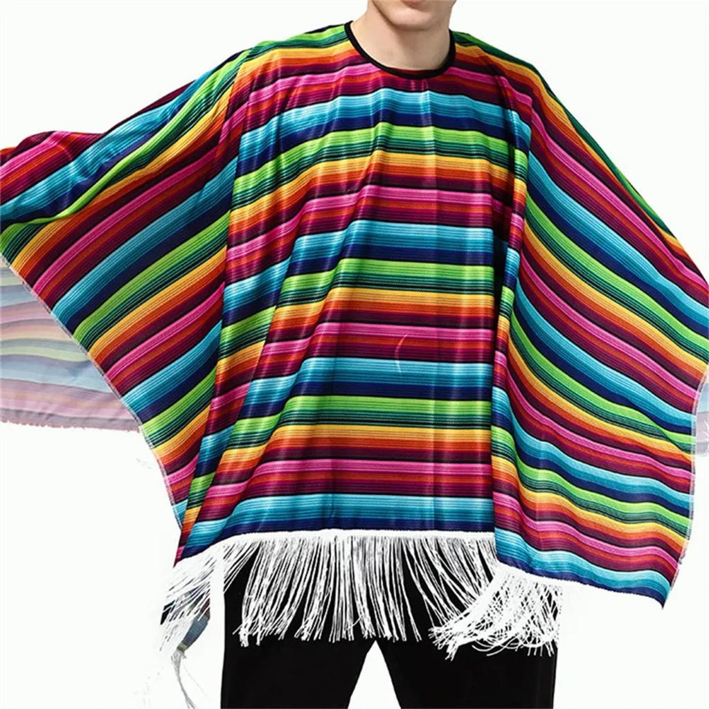 NOELAMOUR Men's Rainbow Mexican Folk Poncho Costume Set (Design B)