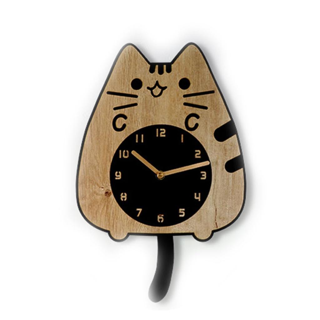 TOMMYFIELD Pendulum Clock with Cat Tail Wobble, Wooden Silent Wall Clock, Soothing Gift [Parallel Import]