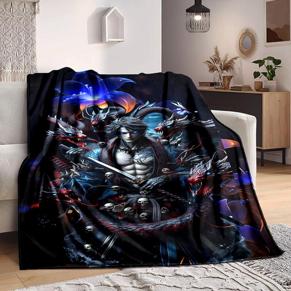 1pc Fantasy Warrior Statue Blanket Lightweight Flannel Blanket Throw Blanket For Sofa, Bed, Travel, Camping, Livingroom, Office, Couch