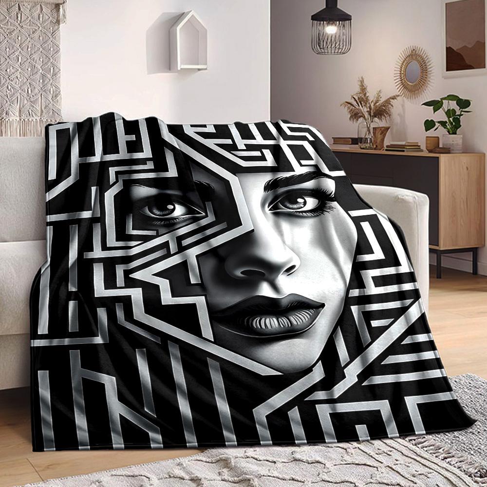 1pc Face Pattern, Abstract Art Blanket Soft All Season Throw with Vibrant Design, Perfect for Home, Travel, and Gifts, Ideal for Naps and Camping