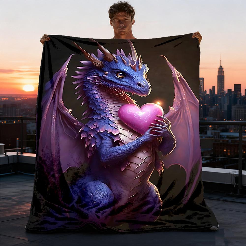 1pc Dragon Heart Throw Blanket Polyester Fiber, Lightweight Flannel, Soft & Warm, All Season Use for Outdoor, Camping Digital Print