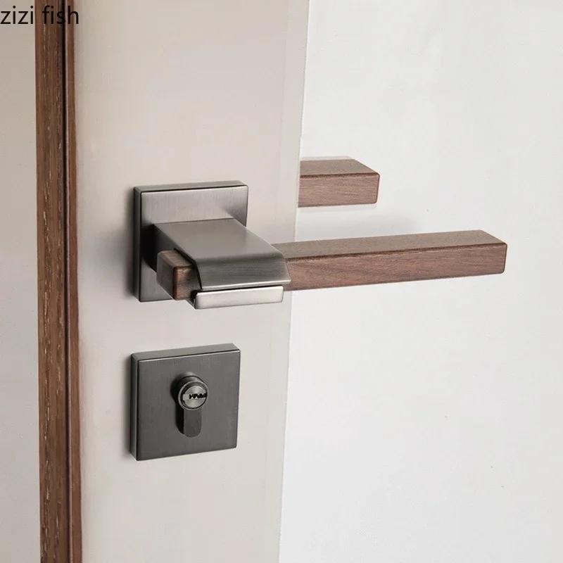 Walnut Door Handle Indoor Metal Door Lock Home Silent Locks Bedroom Magnetic Lock Secure Split Lock Doors Hardware Accessories