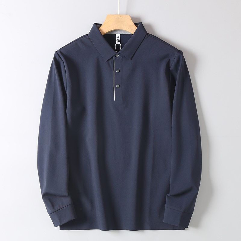 Foreign Trade Surplus Order American Fleece-lined High end Knitted Lapel Long sleeve Base T-shirt Men's Spring and Autumn Business Leisure Polo Shirt