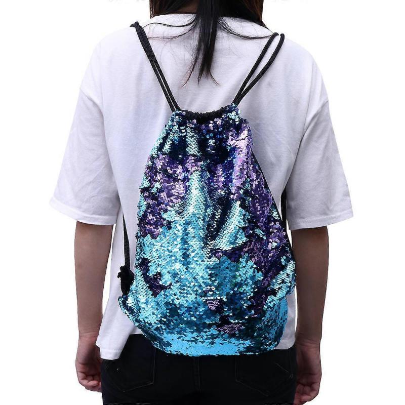 Mermaid Drawstring Backpack Fashionable Design For School Work Blue Square Shape 1Pcs