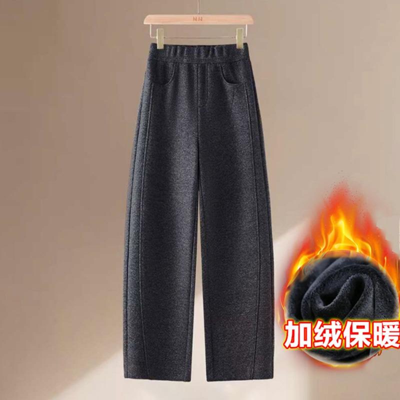 Women's Light Gray Fleece Lined Wide Leg Pants High Waist Warm Casual Trousers