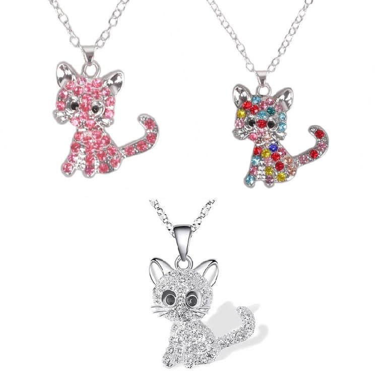 Eye Catching Cats Pendant Necklace Fashionable Rhinestones Adorned Cats Pendant Necklace Jewelry for Daily Wear