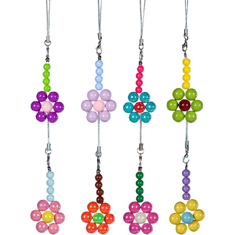 Colorful Bead Flower Pendant Phone Charm Hangings Rope Sweet Phone Chain Strap Bag Decoration Lanyard Keychain Accessory