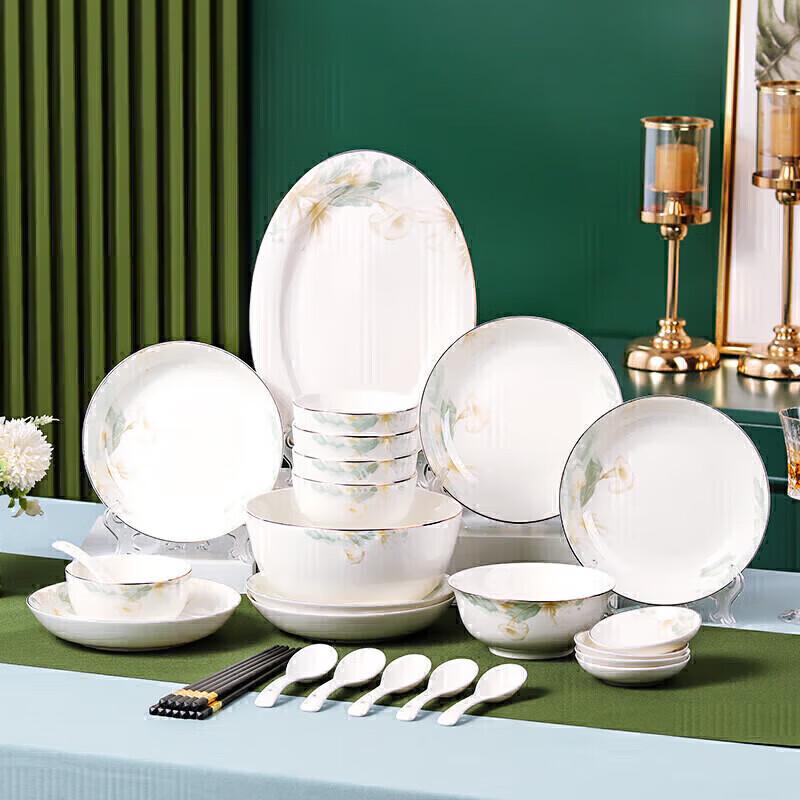 Morning Glory 32-Piece Light Luxury Ceramic Dinnerware Set