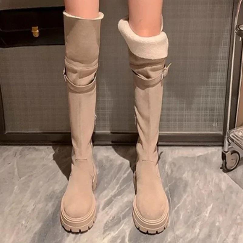 Women Mid Heels Over The Knee Suede Chelsea Boots New Platform Designer Luxury Shoes Goth Brand Walking Gladiator