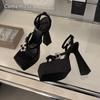 15CM High Heels Rhinestone Buckle Straps Platform Sandals for Women Fashion Party Dress Shoes Black Sandalias De Mujer Size35-41