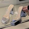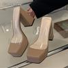 11cm Women's Platform Sandals Fashion Slip-on High Heel Sandals Clear PVC Strap Sexy Slides Ladies Party Dress Shoes Size 34-40