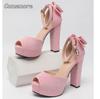 Peep Toe Back Bow Knot Women Platform Sandals Ankle Strap Chunky High Heel Sandal Pink Elegant Ladies Shoes Party Dress Footwear